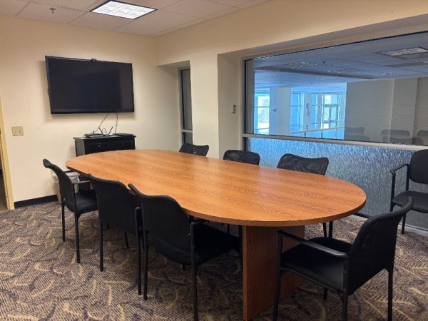 The room overlooks the Hospitality Center lobby, providing natural light and a welcoming view while maintaining a quiet, professional atmosphere.